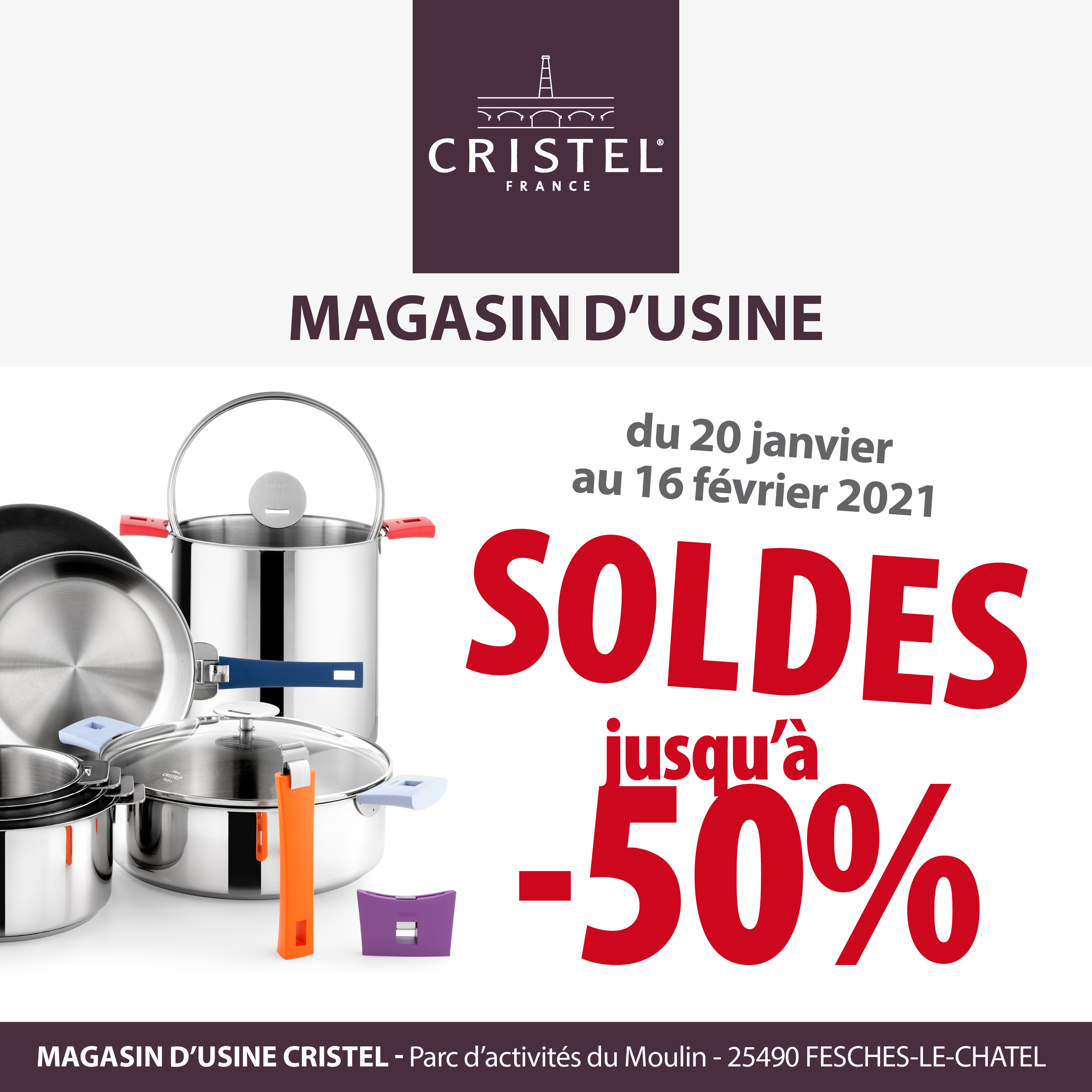 LES SOLDES D'HIVERau Magasin d'usine CRISTELdu 20 janvier au 16 février 2021