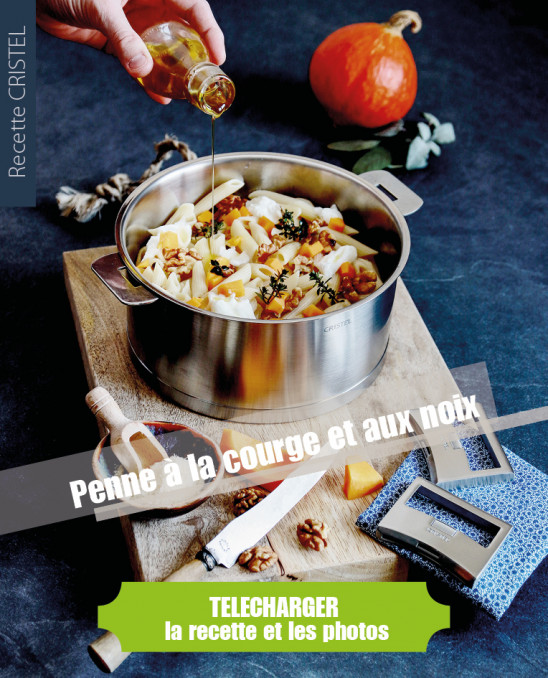 CRISTEL - recette penne à la courge et aux noix