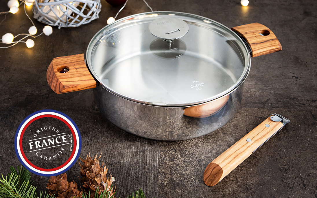 Le set de casseroles CRISTEL. Tout inox, en version 3 ou 4 casseroles, avec poignée amovible.