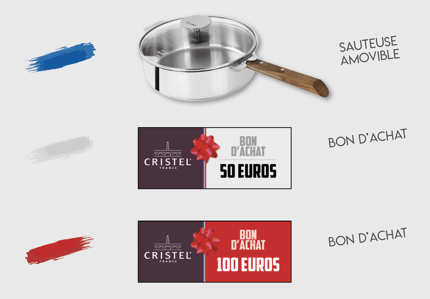 CRISTEL lance, en partenariat avec ses revendeurs à travers la France | | LE GRAND JEU TICKET TRICOLORE | | Les lots suivants sont mis en jeu chez chacun de nos revendeurs | | POUR PARTICIPERRENDEZ-VOUS CHEZ UN DE NOS REVENDEURS PARTICIPANTS liste ci-dessous Plus de 150 points de vente participants, il y en a forcément un près de chez vous ! | | POUR JOUER DIRECTEMENT EN LIGNE Attention, choisissez bien votre revendeur, les gains sont à récupérer directement chez lui. | | | |