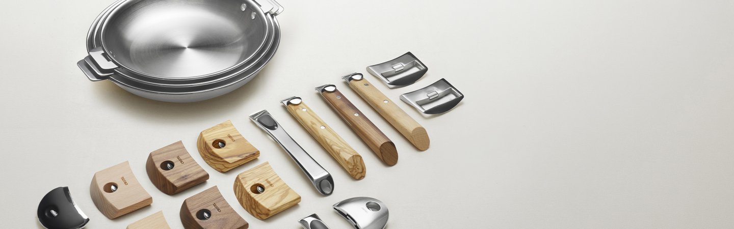 Casteline ist die erste Kollektion von CRISTEL-Utensilien mit genieteten Stiel- und Seitengriffen.