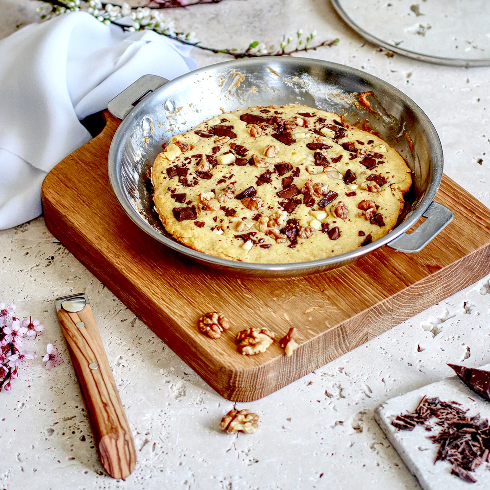 Dieser besondere Aufbau der Pfannen aus der Reihe Casteline sorgt für eine gleichmäßige Wärmeverteilung im gesamten Pfannenkörper vom Boden bis zum Rand und nicht nur über den Thermodiffusionsboden wie bei den anderen Edelstahl-Kollektion von CRISTEL.