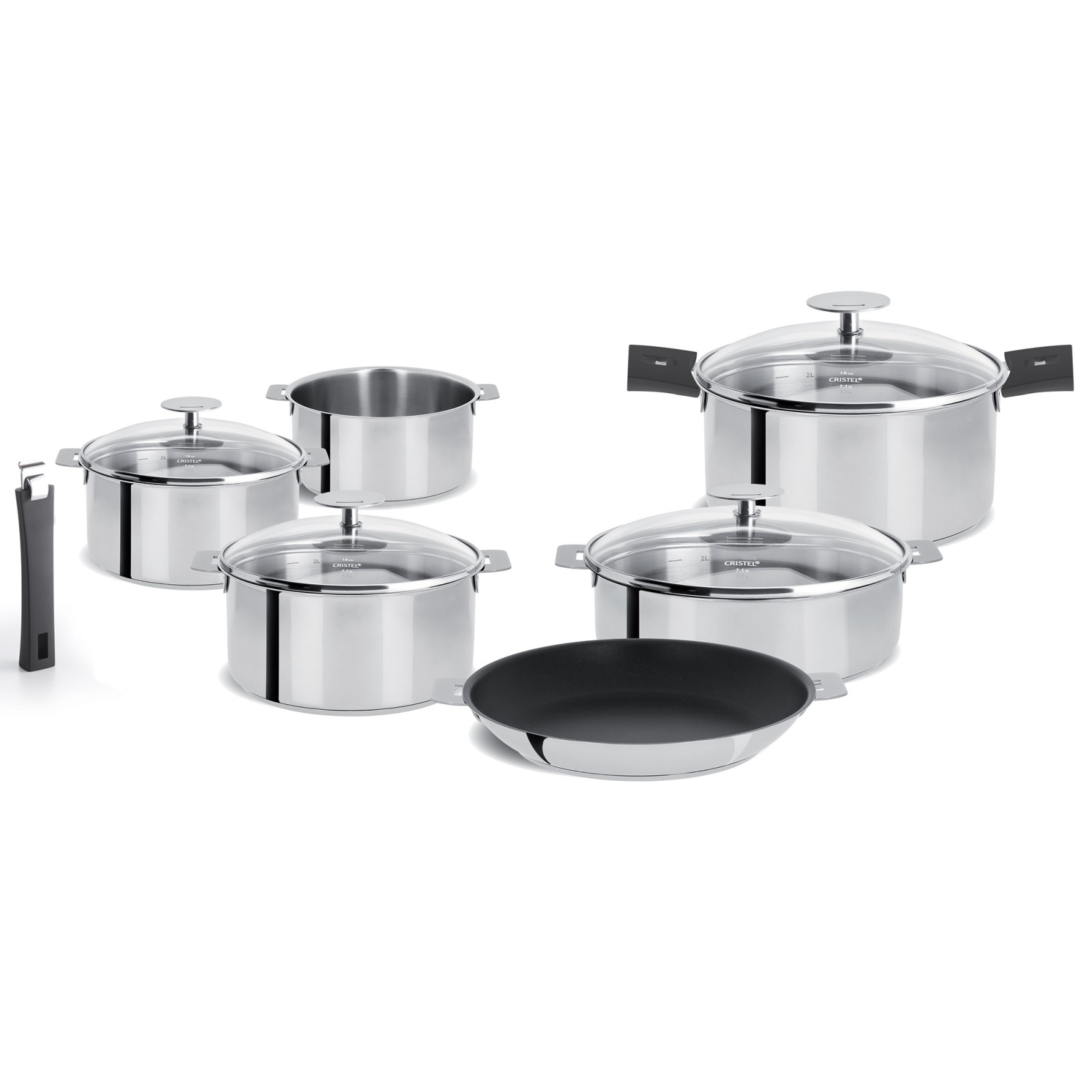 Durch das Konzept der abnehmbaren Griffe lassen sich die Kasserollen und Fleischtöpfe von CRISTEL perfekt stapeln und sparen somit viel Platz im Schrank und in der Spülmaschine.