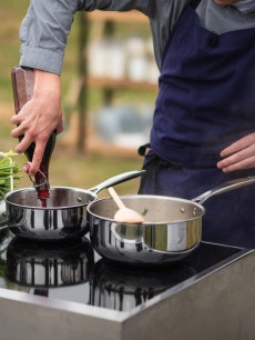 Der flache Deckel ohne Deckelknopf für die Reihe Strate mit abnehmbaren Griffen ist problemlos zu verstauen.