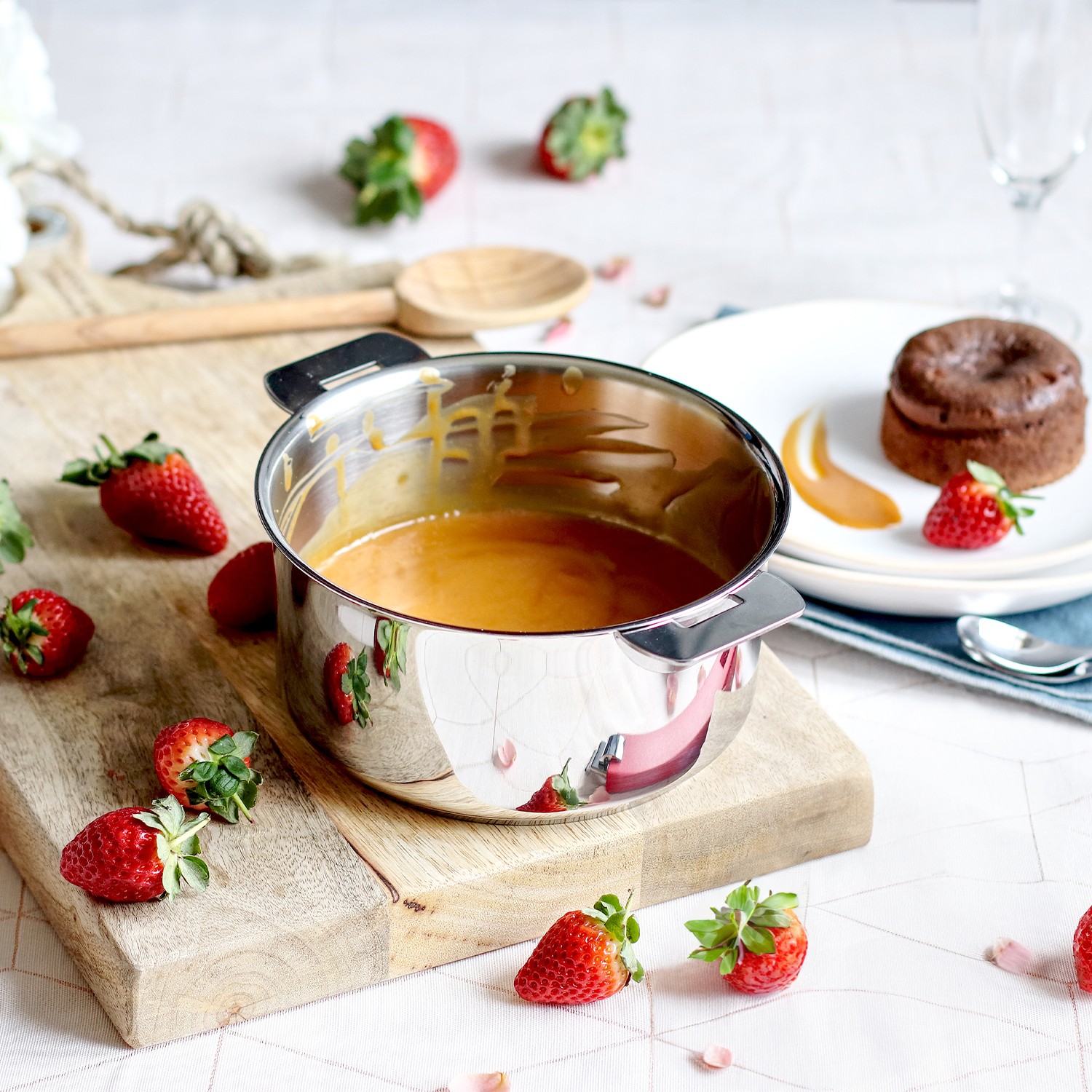 Kasserollen aus der Reihe Mutine aus Edelstahl 18/10 bewahren alle geschmacklichen Vorzüge der Lebensmittel und sind nach dem Kochen problemlos zu reinigen.
