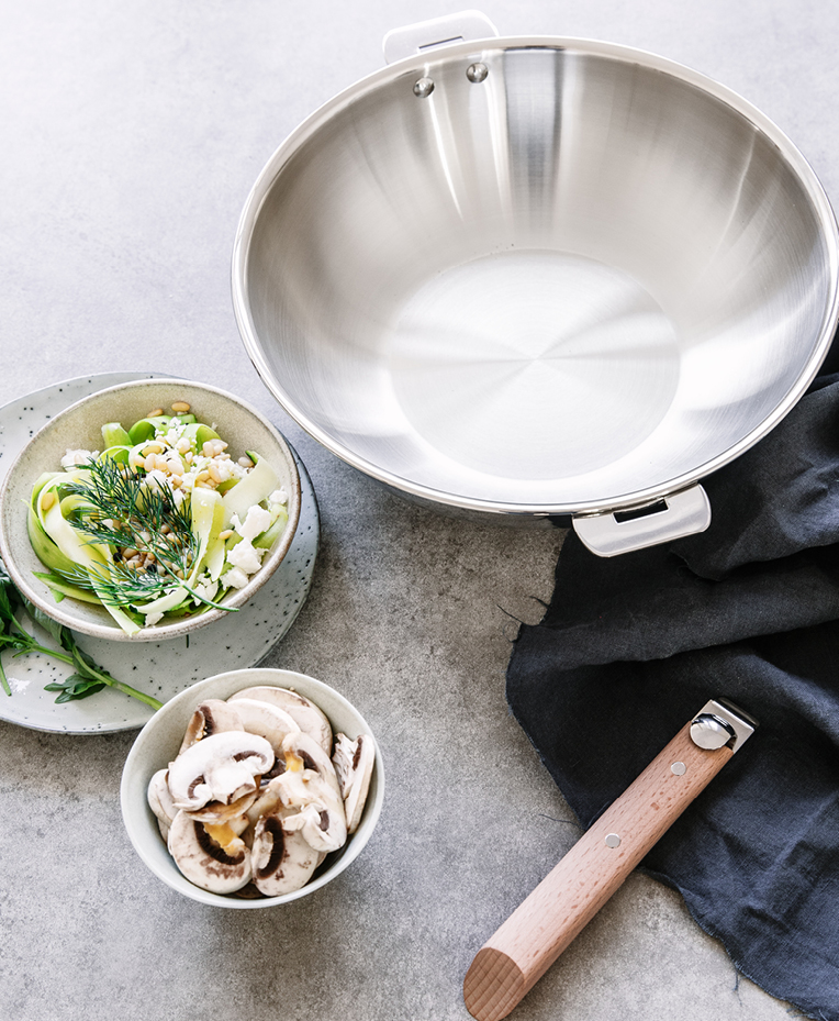 EDELSTAHL-WOK AUS DER REIHE CASTELINE MIT ABNEHMBAREN GRIFFEN