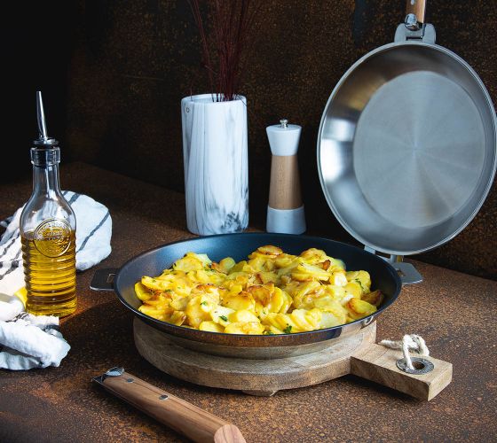 Bei CRISTEL haben wir verstanden, dass sowohl Edelstahlpfannen als auch beschichtete Pfannen ihre Vorteile haben und nicht genau für die gleiche Art des Kochens geeignet sind. Deshalb haben wir Küchenartikel aus Edelstahl mit und ohne Beschichtung entwickelt. Unsere Pfannen sind mit abnehmbaren Griffen erhältlich, um mühelos vom Kochen zum Servieren überzugehen zu können – alles im selben Gefäß.