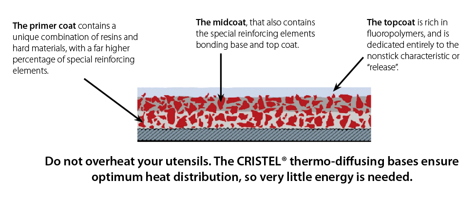 The Exceliss® non-stick coating is applied to CRISTEL traditional stainless steel products.