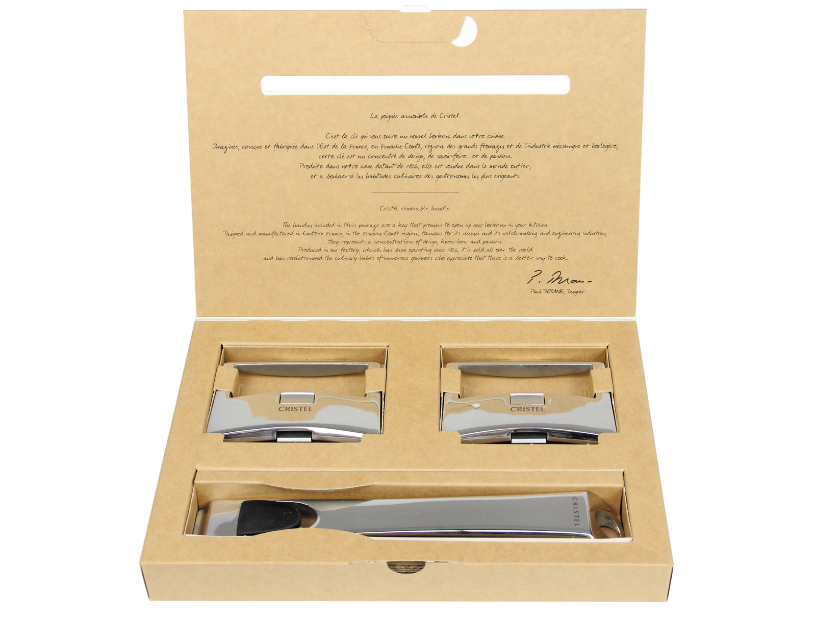 For those who wish to enjoy the elegance of the Casteline collection in their kitchen, as well as the practical side of removable handles, CRISTEL has created the Casteline removable handles.