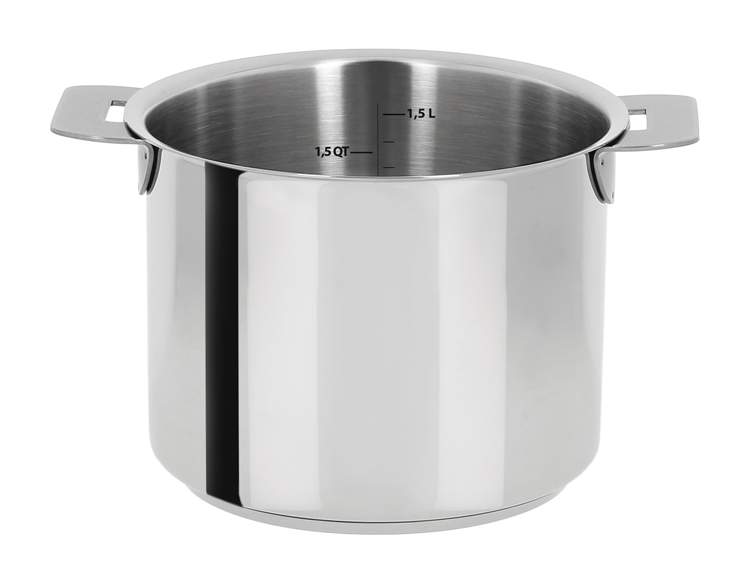 The Mutine high-sided saucepan with volume markings is 11-cm high, compared with 7 cm for the standard CRISTEL saucepan of the same diameter.