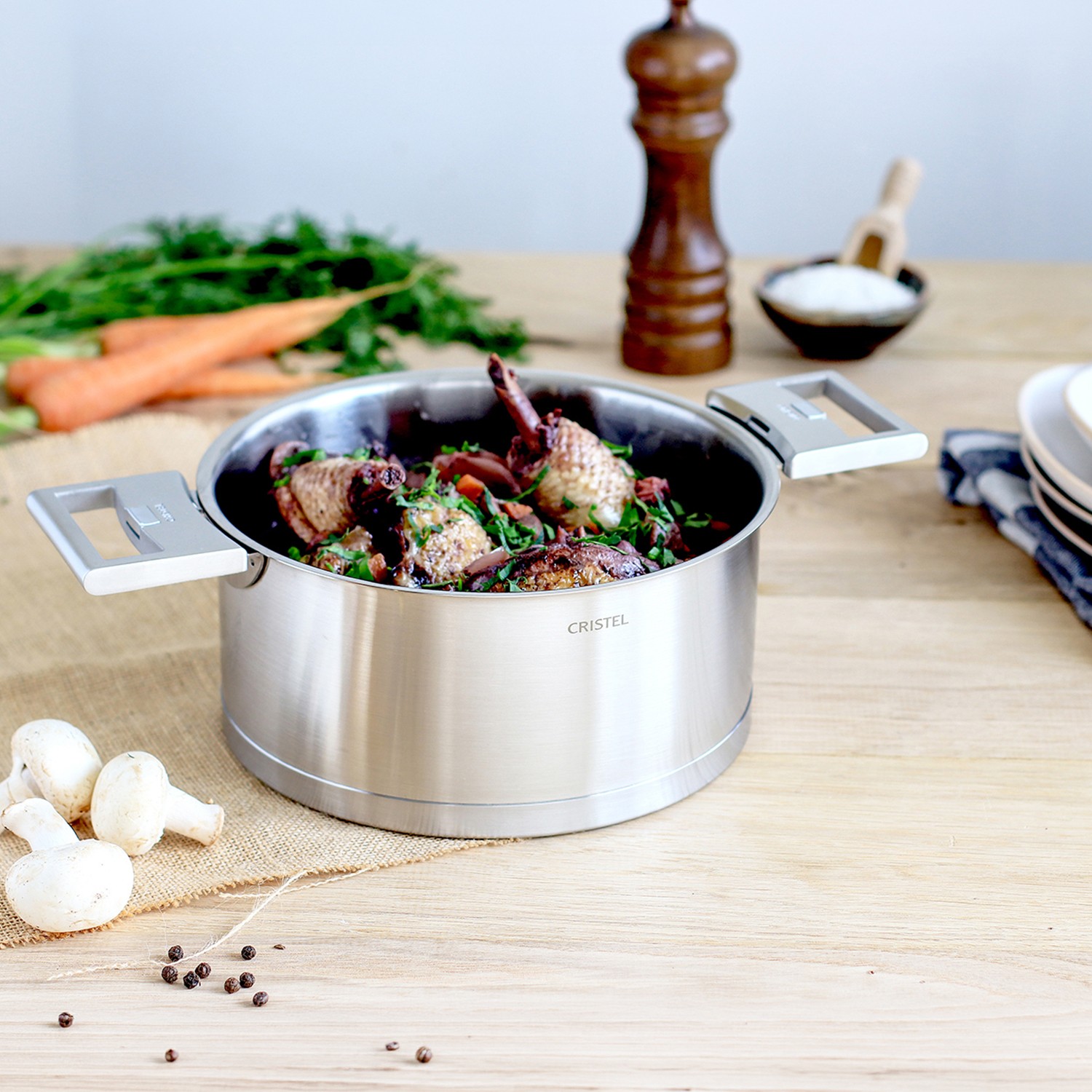 The removable-handle concept enables perfect stacking of CRISTEL saucepans for significant space savings in your cupboards and dishwasher.
