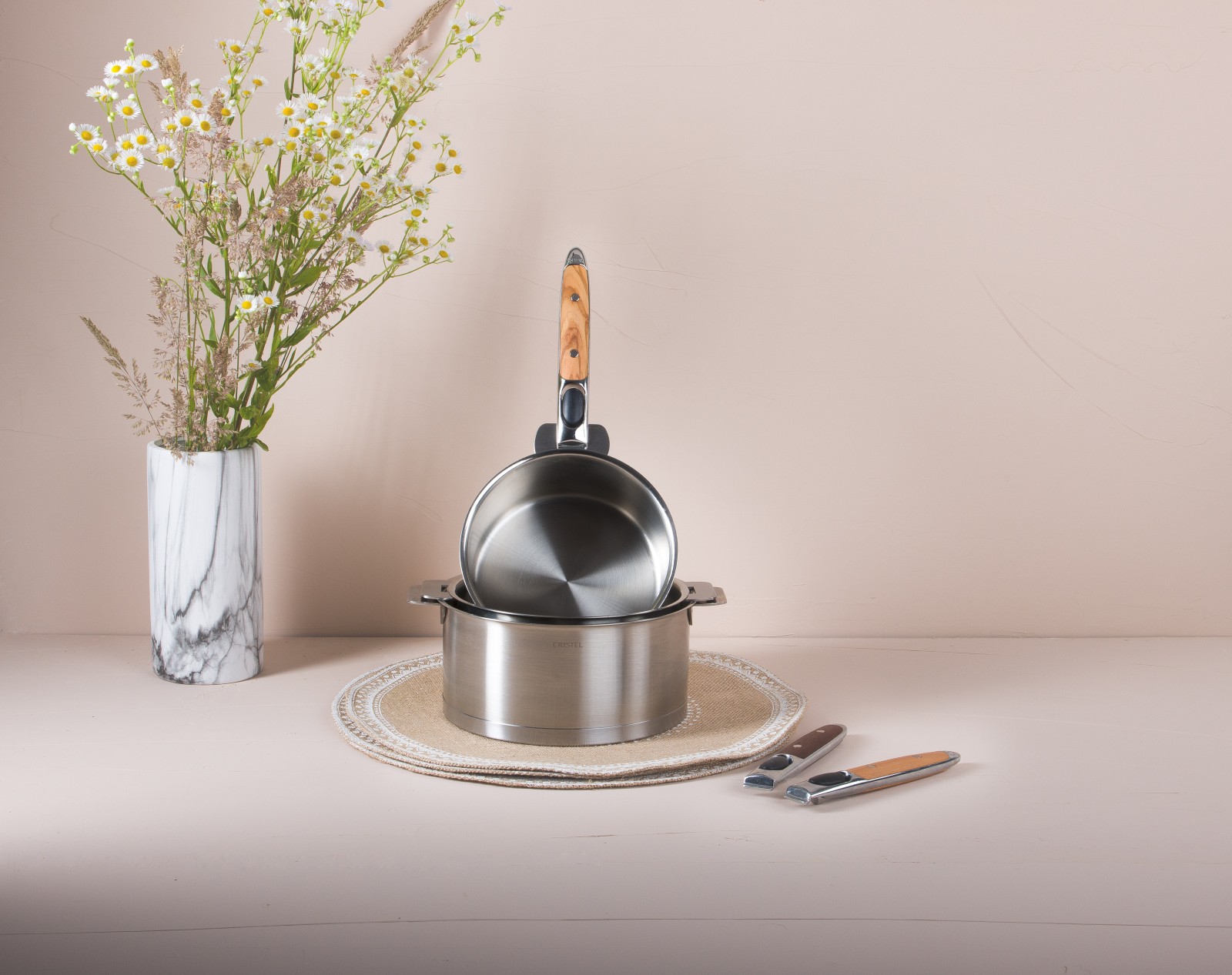 The latest of the CRISTEL removable handles, the Zénith 3 removable handle is associated with the Casteline collection. It also fits to all saucepans, frying pans, etc. or the lids of the various CRISTEL removable collections.