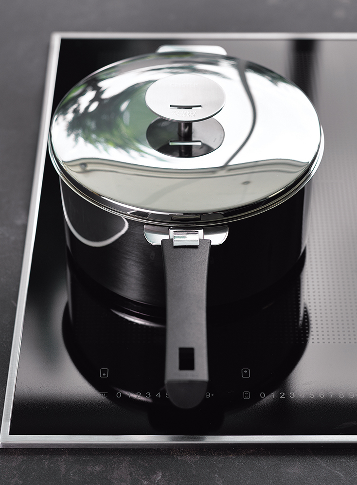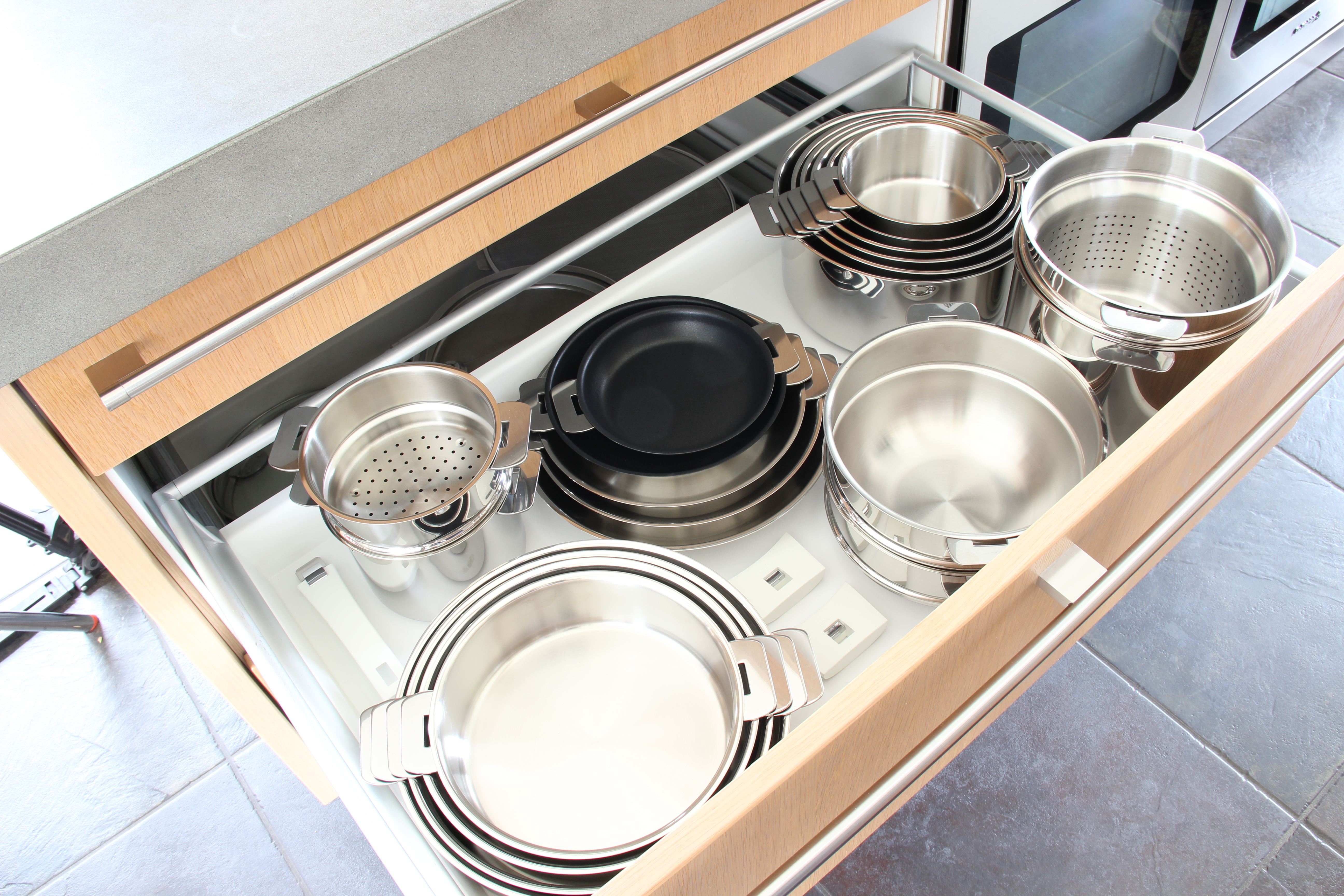 Lorsqu’on a beaucoup d’ustensiles de cuisine, il peut s’avérer difficile de trouver le bon au moment où l’on en a besoin. Devoir fouiller les tiroirs et les éléments de cuisine de fond en comble dans l’espoir de retrouver un ustensile indispensable engendre perte de temps et frustration. Grâce aux poignées amovibles, vous conservez les accessoires essentiels à portée de main. Il vous suffit de les ranger dans votre tiroir à couverts ou de les accrocher au support placé au-dessus de votre plan de travail. Il en va de même pour la gamme de faitouts, poêles et casseroles CRISTEL sans manches ni anses, si faciles à empiler et ranger que vous leur attribuerez une place de choix dans votre cuisine, même s’il s’agit d’un petit espace. Vous ferez ainsi de votre cuisine un endroit sans stress, bien organisé. Tout ce dont vous aurez besoin y sera aisément accessible.