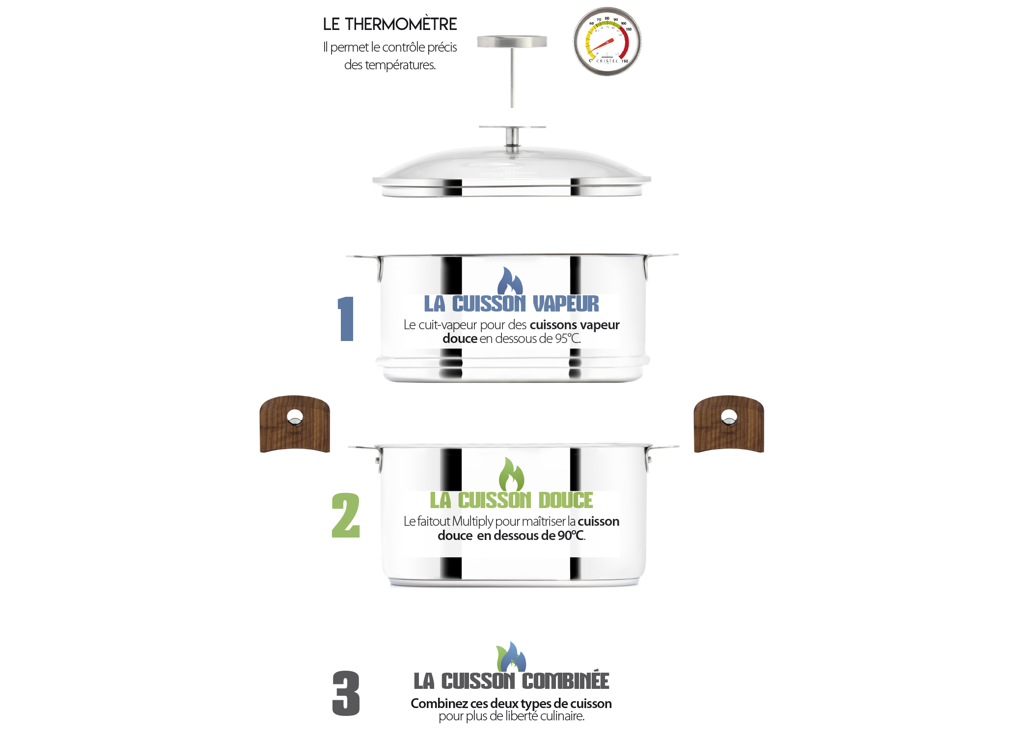 C’est un combiné de la cuisson douce et de la cuisson vapeur. Ceci permet notamment d’obtenir un panel de saveurs et de textures plus large, tout en s’assurant la préservation des nutriments et vitamines des aliments.