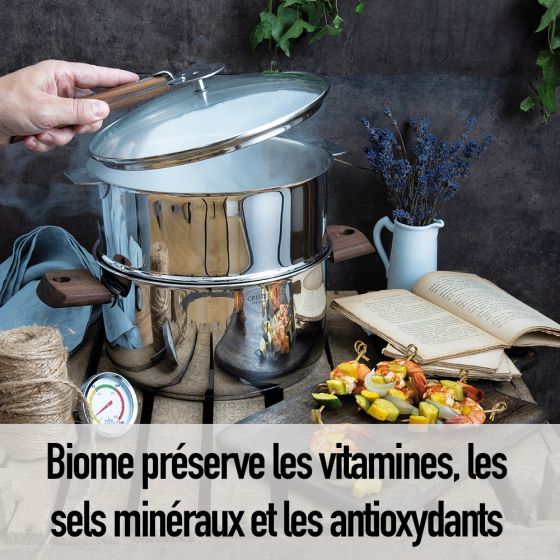Cuisinez sainement tous vos aliments avec Biome. Préservez vitamines, antioxydants et sels minéraux grâce à la cuisson basse température et la cuisson vapeur.