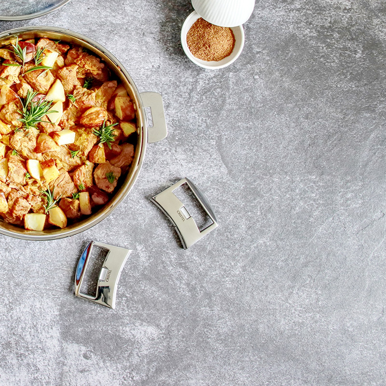 En fonte d'inox, avec un mécanisme inox, les anses amovibles Casteline assurent sécurité et modularité dans votre cuisine.