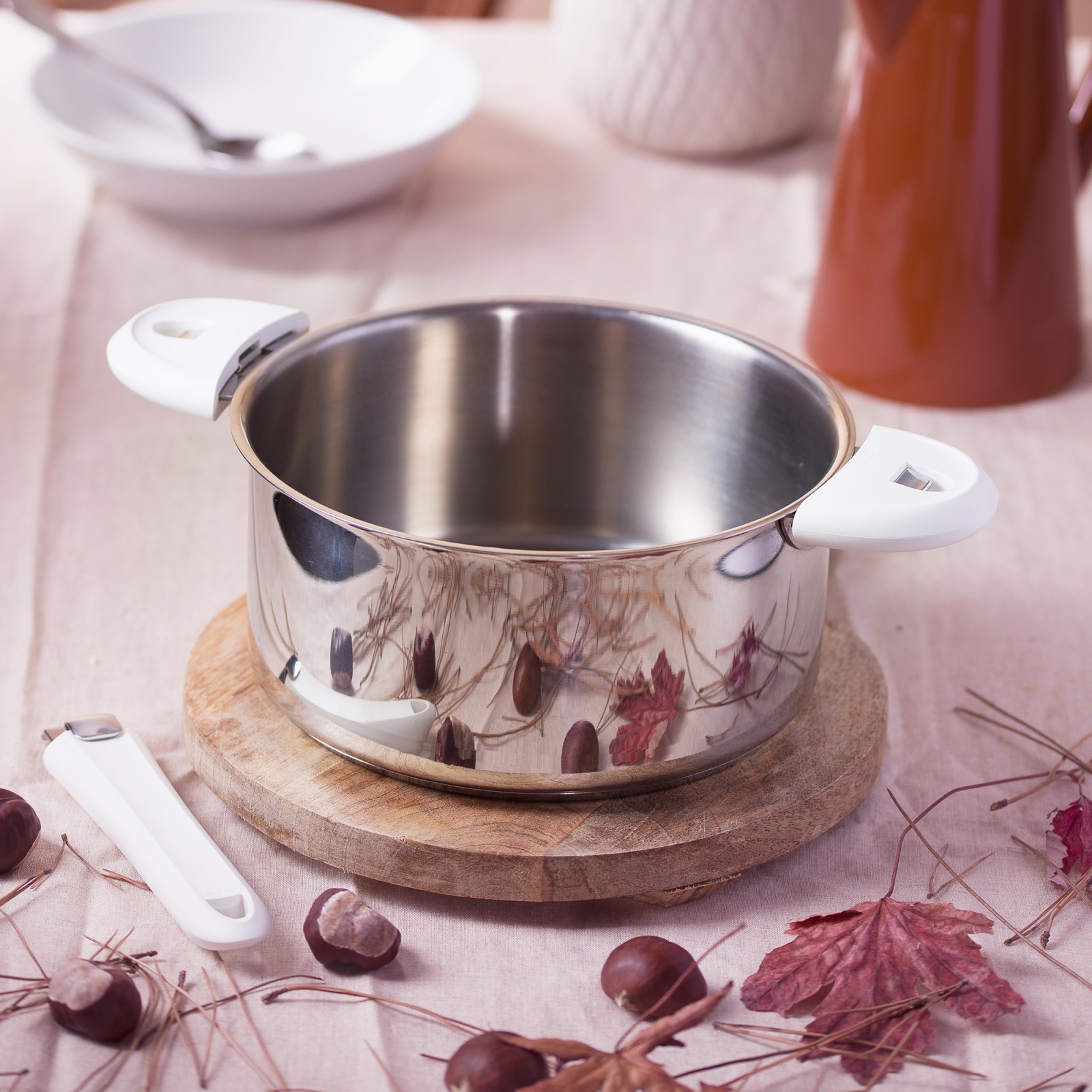 Dernières nées des anses amovibles CRISTEL, les anses Mutine Evolution sont associées aux ustensiles de cuisson inox de la collection Mutine Amovible mais s'adaptent également à tous les faitouts, poêles, sauteuses, ... des différentes collections amovibles CRISTEL.