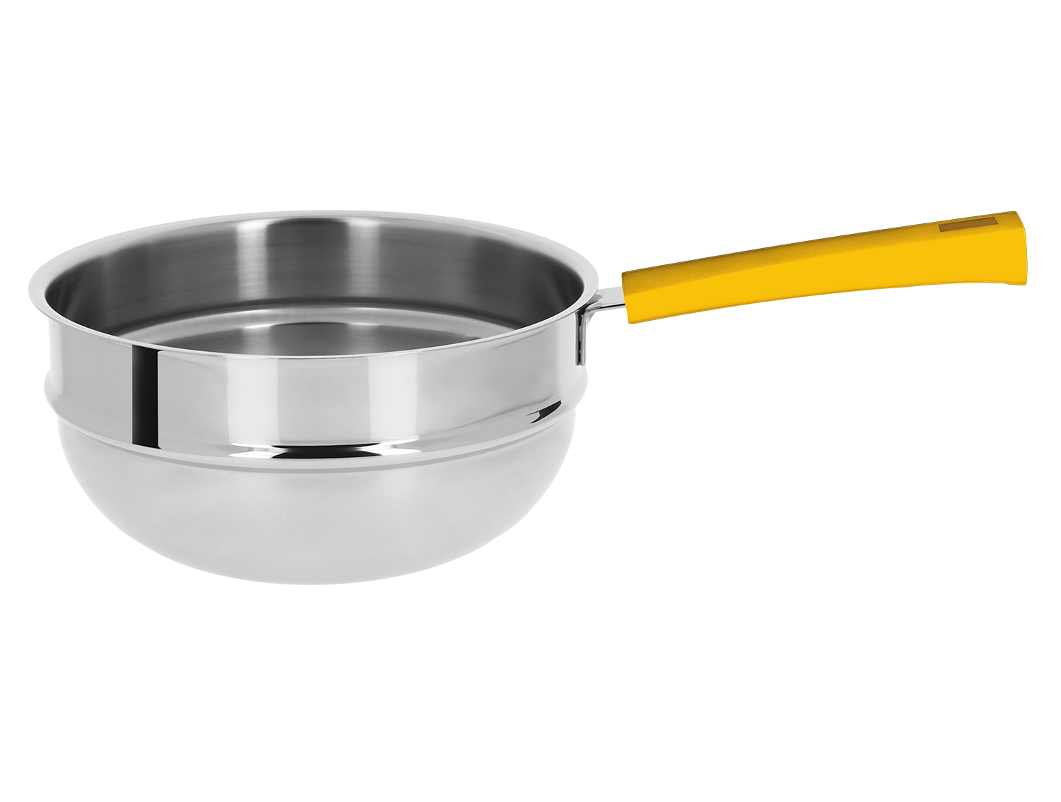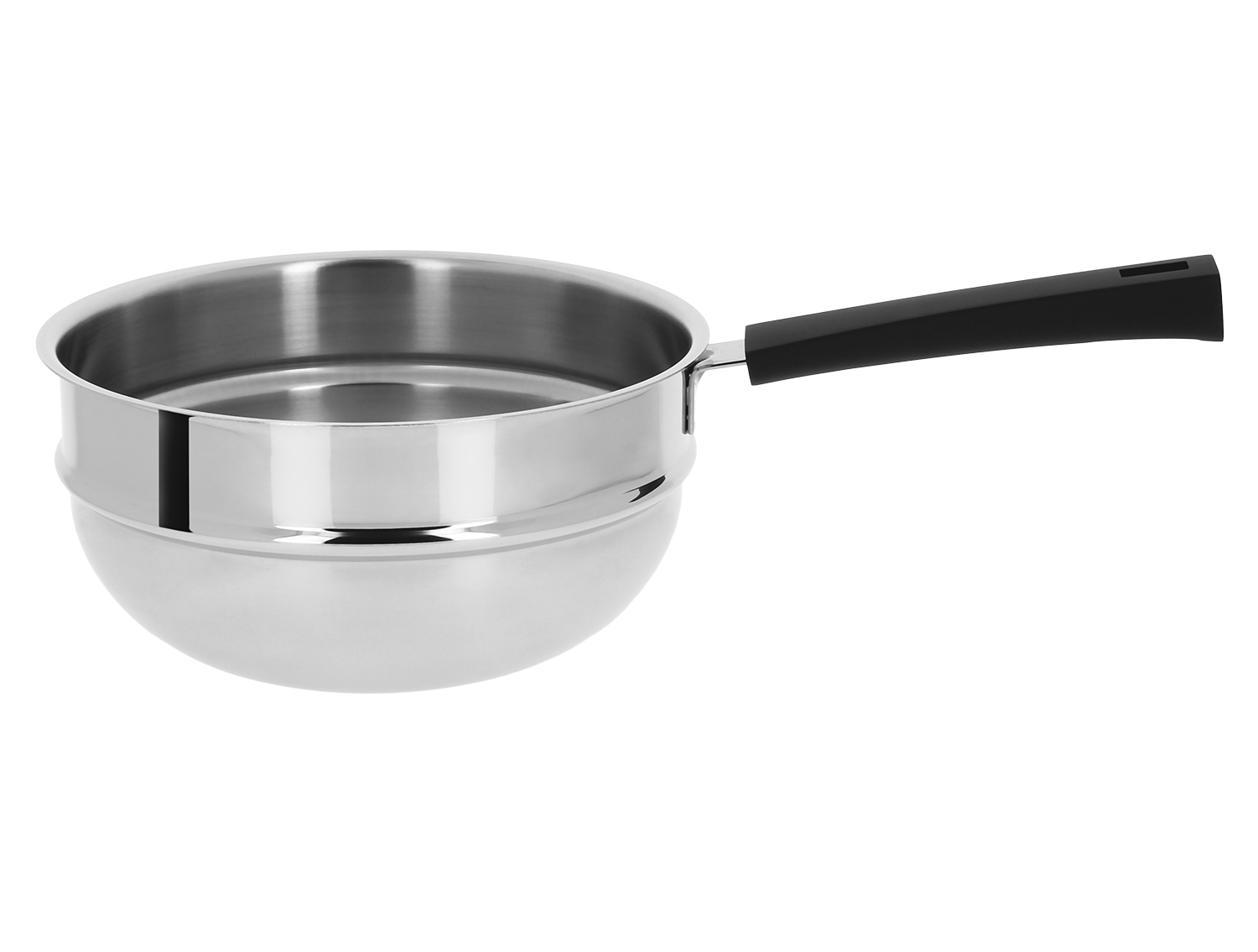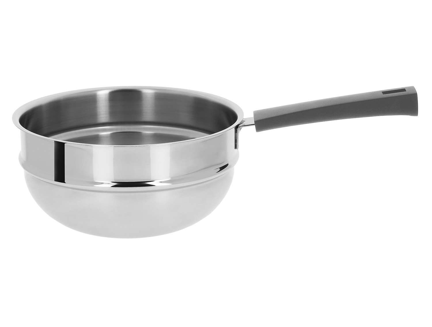 En inox 18/10 à la finition miroir, l’élément bain-marie Mutine Fixe s’adapte parfaitement aux casseroles CRISTEL de même diamètre et reste parfaitement stable.