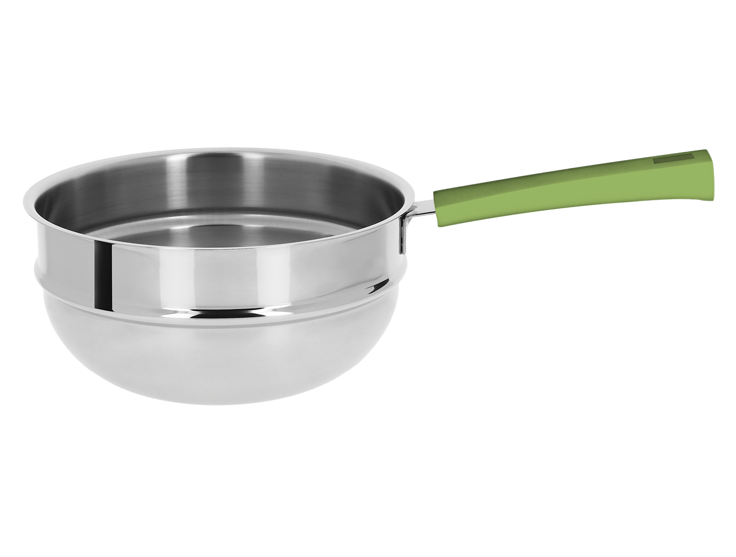 L’élément bain-marie Mutine, en inox 18/10, préserve les qualités gustatives des aliments et se nettoie facilement après la cuisson.