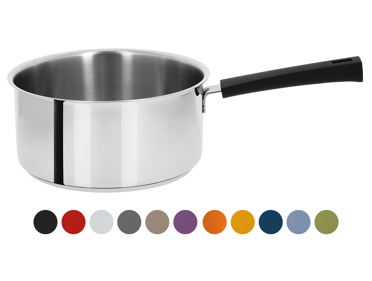 Indispensables en cuisine, les casseroles inox Mutine avec leur poignée fixe en résine plastique noire existent en 4 tailles : 14, 16, 18 et 20 cm.