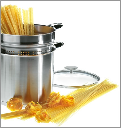 Les éléments cuit-pâtes Strate, en inox 18/10, préservent les qualités gustatives des aliments et se nettoient facilement après la cuisson.