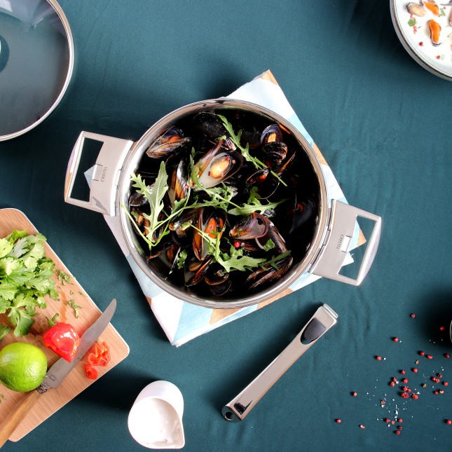 Le concept amovible permet un empilage parfait des faitouts et casseroles CRISTEL pour un gain de place appréciable dans les placards comme dans le lave-vaisselle.