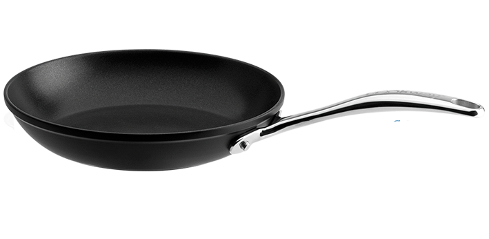 Poêle en aluminium, poignée en fonte d'inox rivetée et revêtement anti-adhérent Excelliss®+ sans PFOA.