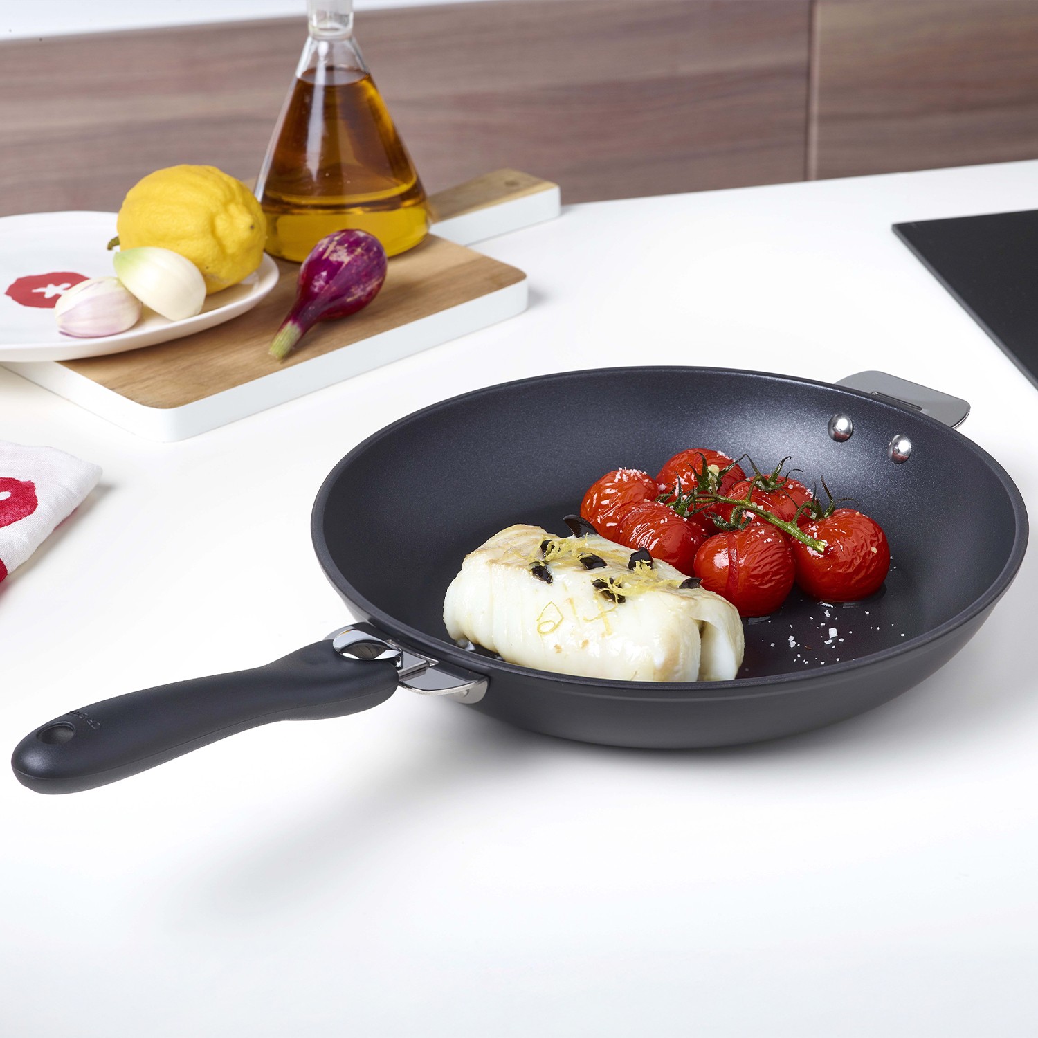 - Poêle en aluminium forgé avec revêtement antiadhésif Ceraliss+, de la collection Cookway.