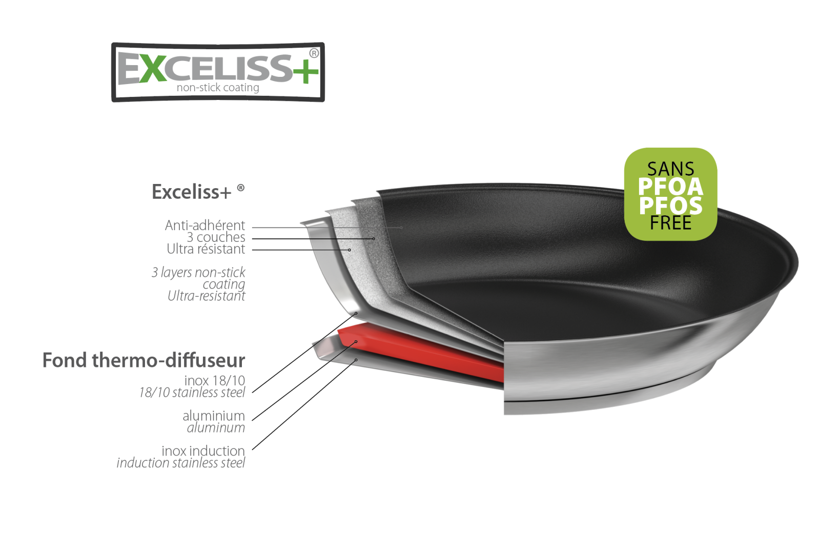 CRISTEL utilise pour ses poêles le revêtement anti-adhérent Exceliss garanti sans PFOA.