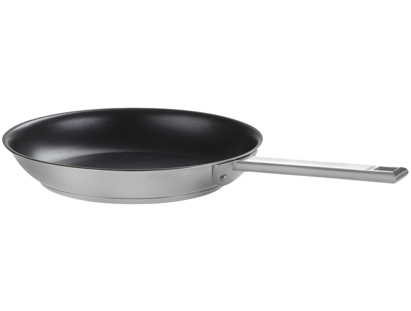 Poêle en inox 18/10, finition brossée, avec revêtement anti-adhérent Exceliss, Strate Fixe.