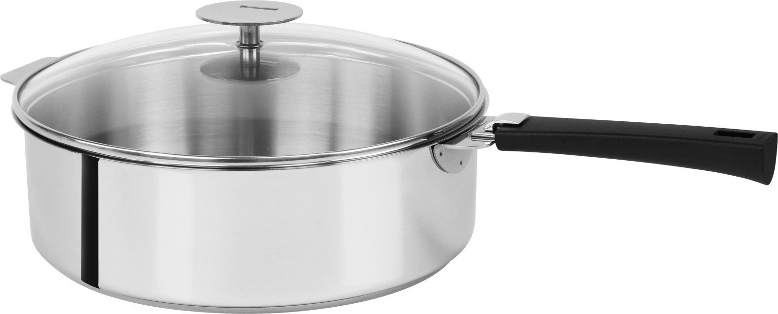 Sauteuse inox 18/10, finition brillant miroir, à anses ou poignée amovible.