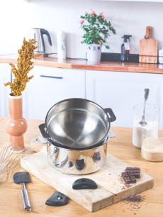 Pratique et modulable, le système de poignée amovible permet de passer facilement de la cuisine à la table et de transformer votre casserole en faitout, en remplaçant la poignée par des anses Mutine.