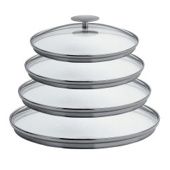 Complétez votre set de 4 casseroles en inox Mutine Amovible avec la Série de 4 Couvercles Platine en verre, de la même collection.