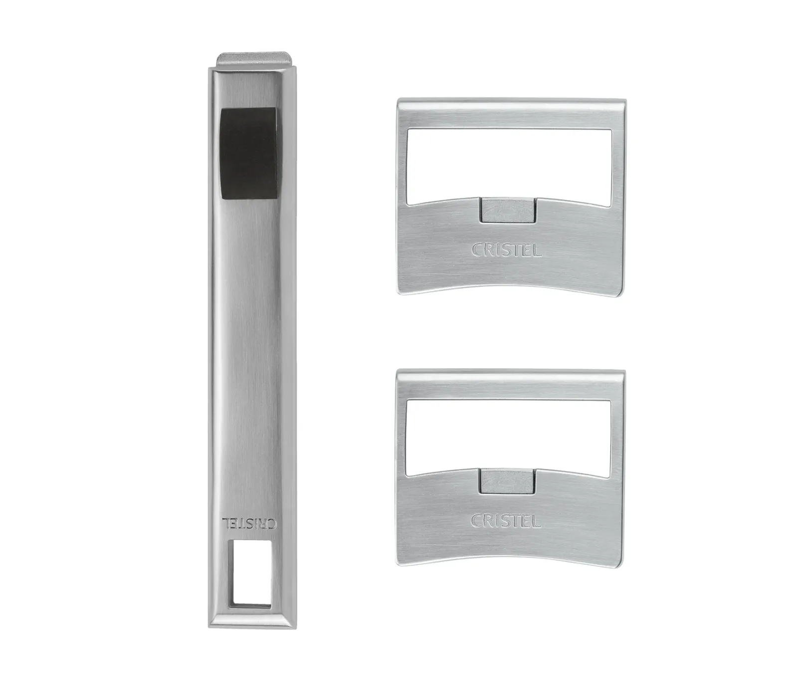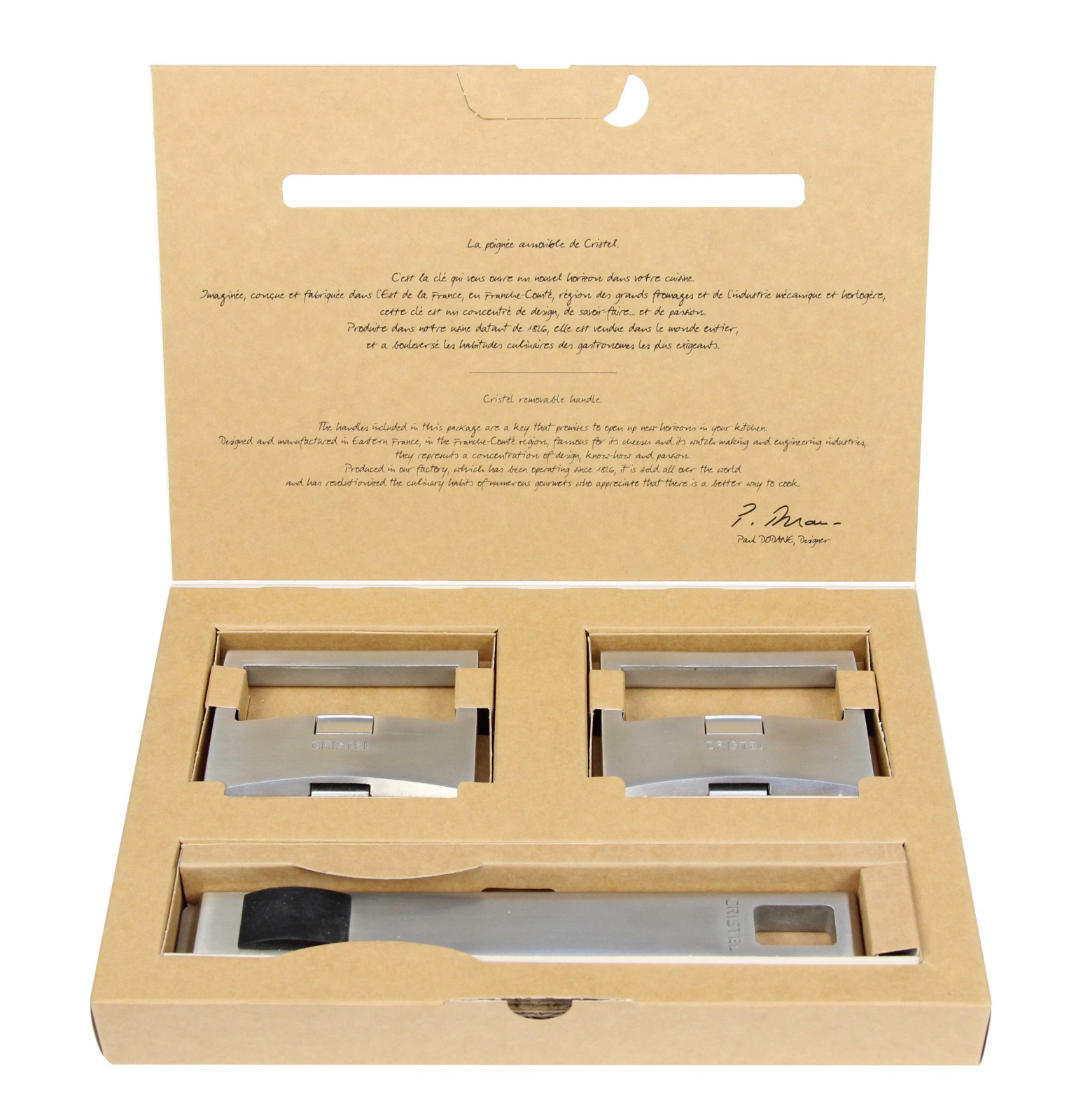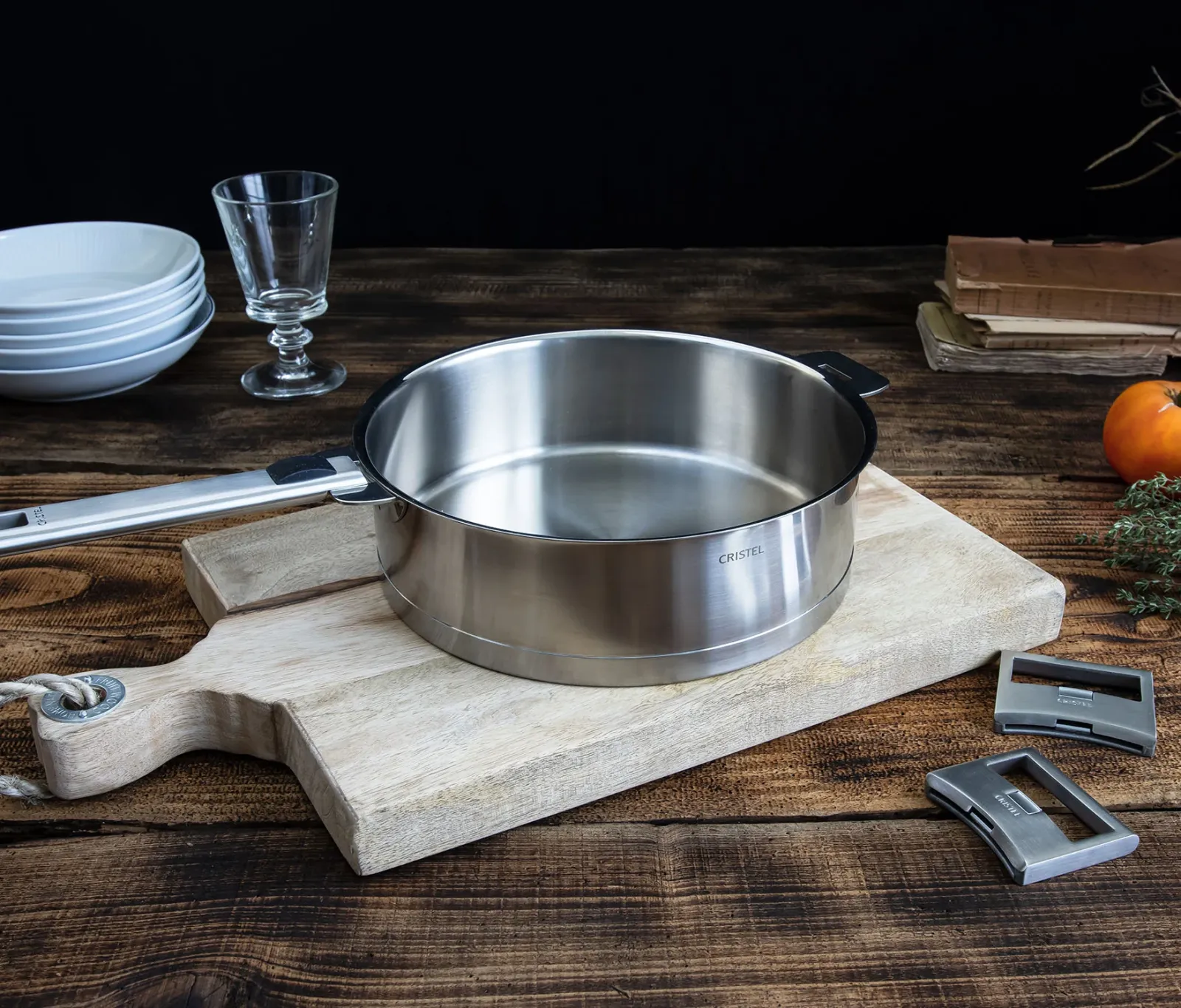 Pour les amoureux de l'inox, CRISTEL a imaginé des anses et une poignée amovible en inox brossé, parfaitement assorties aux casseroles et autres ustensiles de cuisson de sa collection Strate Amovible.