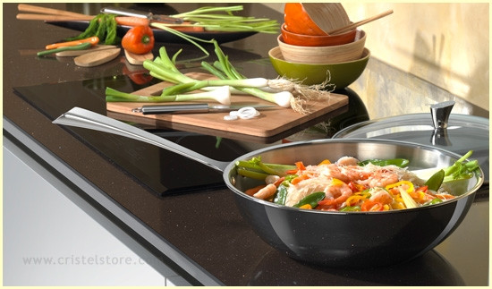 La forme évasée du wok permet de chauffer les aliments de façon uniforme avec peu de matière grasse. La conception en multiples couches des woks CRISTEL améliore encore ces qualités propres au wok.