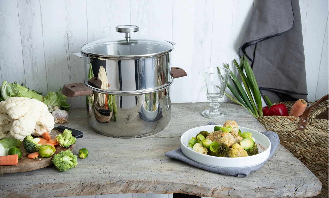 1 Dans le faitout BIOME verser 1 litre d’eau et mettre en chauffe avec le couvercle au 2/3 de la puissance de la plaque de cuisson.