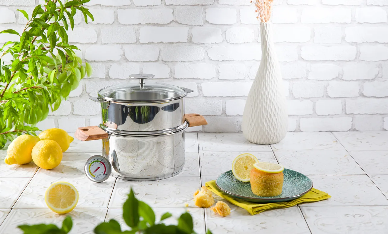 Dans le faitout BIOME verser 500ml d’eau et mettre le cuit-vapeur, avec les ramequins et le couvercle. Monter à pleine puissance de la plaque de cuisson.