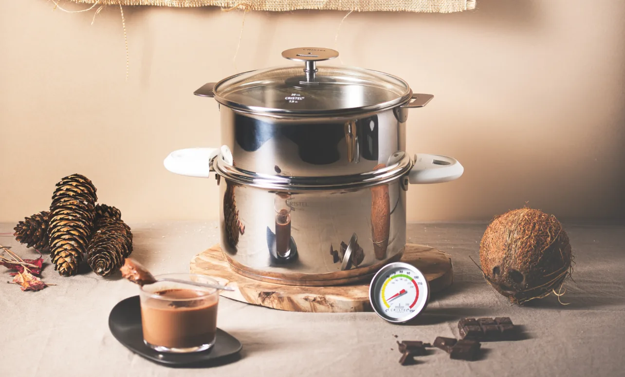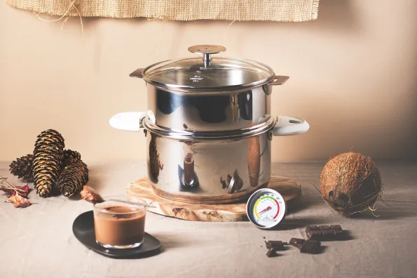 1 Dans le faitout BIOME verser le lait de coco et le miel, déposer sur la plaque de cuisson et mettre en chauffe l’ensemble faitout + couvercle avec la sonde au 2/3 de la puissance de la plaque de cuisson.