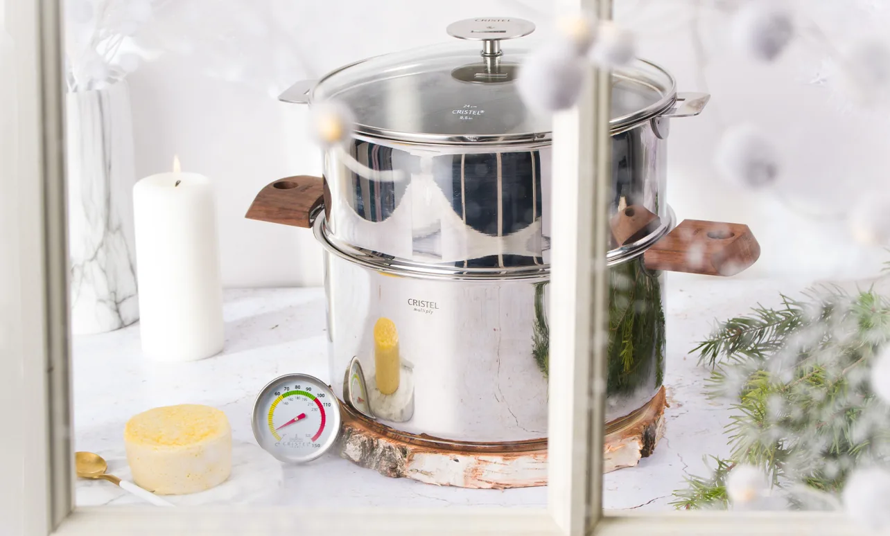 5 Dans le faitout BIOME verser 500ml d’eau et mettre le cuit-vapeur, avec les ramequins et le couvercle. Monter à pleine puissance de la plaque de cuisson.