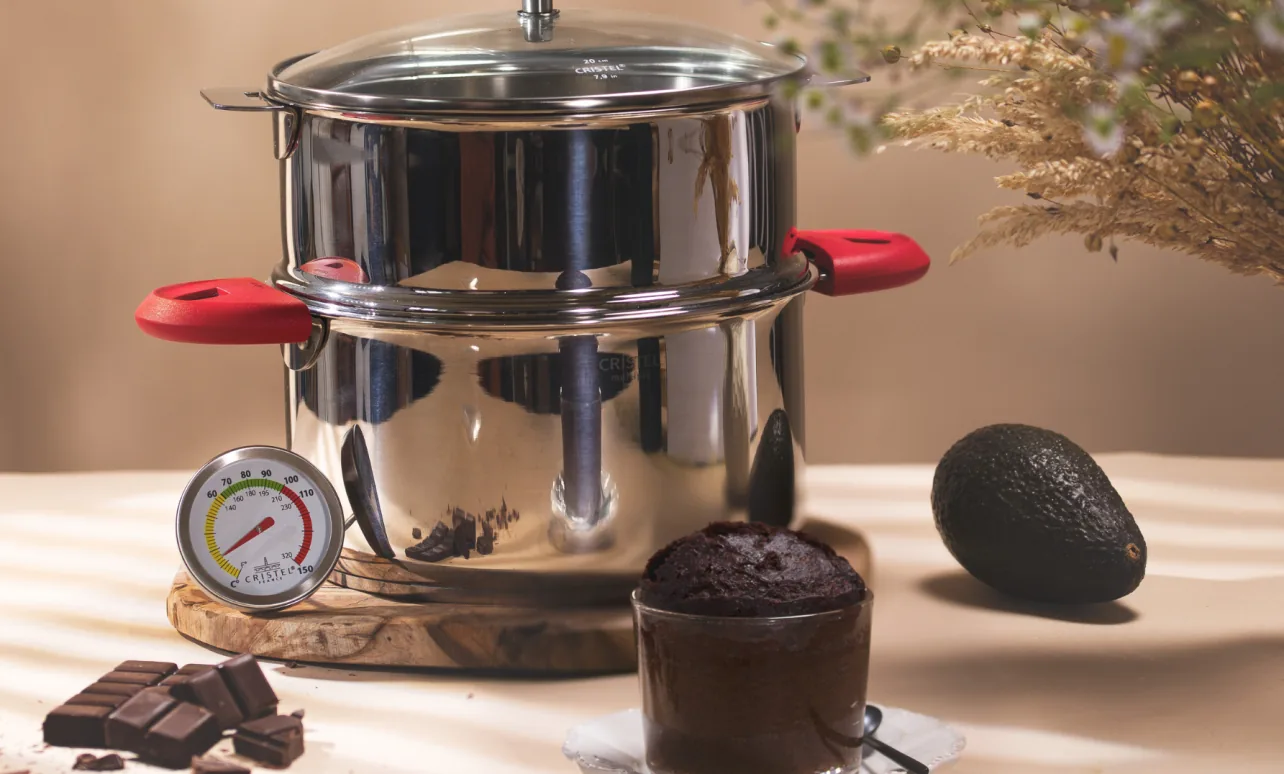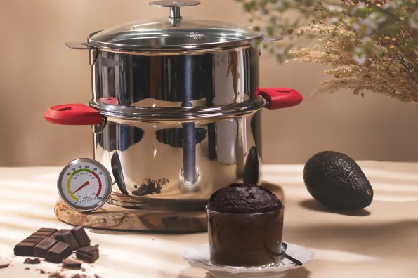 3 Dans le panier-vapeur BIOME déposer les ramequins et fermer avec le couvercle. Monter le feu à pleine puissance de la plaque de cuisson. Quand la température atteint 80°C abaisser au 1/3 de la puissance de la plaque et laisser cuire 30 minutes.