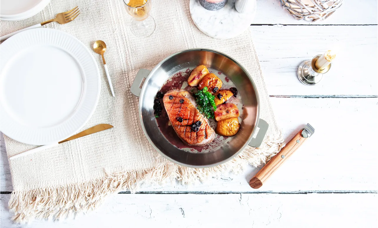 Magret de canard aux pommes et cidre
