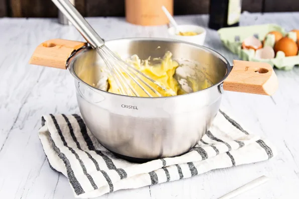 2 Commencer à fouetter énergiquement en incorporant l’huile doucement.