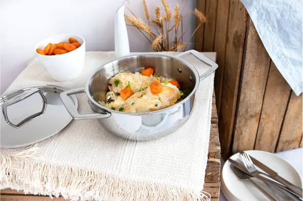 3 Mettre une cuillère d’huile dans le faitout et ajouter les oignons.