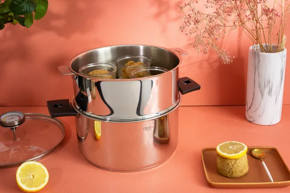 5 Mettre un mettre 500 ml d’eau dans le faitout du BIOME (1 litre pour le 24 cm) et mettre en chauffe l’ensemble faitout + cuit-vapeur + couvercle au 2/3 de la puissance de la plaque de cuisson.