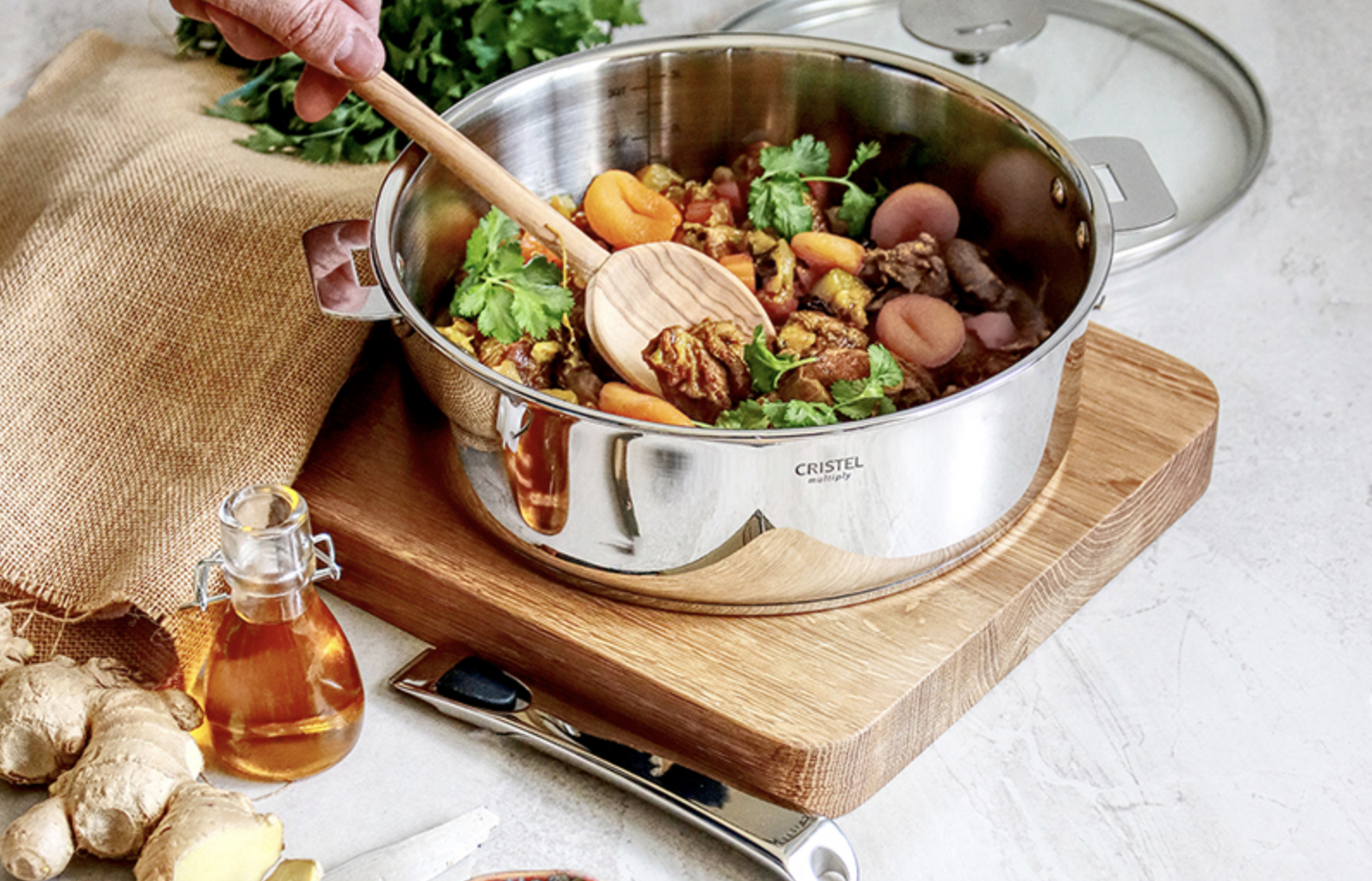 1 Faire chauffer votre sauteuse CRISTEL au 2/3 de la puissance maximale de votre plaque.